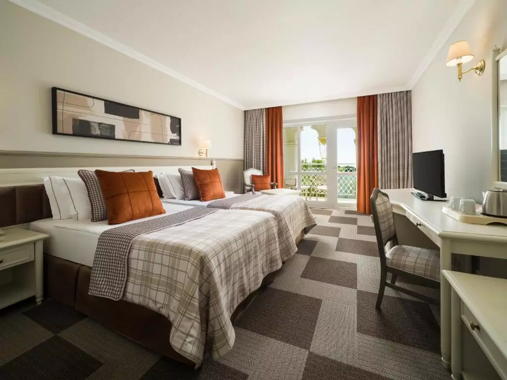 این هتل بزرگ ۴ طبقه و در مجموع ۸۷۴ اتاق و سوئیت دارد که پنجره آنها رو به باغهای سرسبز اطراف باز میشود. دیوار واحدها عایق صوتی است و این امر، باعث میشود آرامش شما با سروصدای بیرون از اتاق به هم نریزد. امکاناتی مثل مینیبار، تهویه مطبوع، تلویزیون و چایساز یا قهوهساز برای رفاه حال مهمانان در نظر گرفته شده است. حمام اختصاصی واحدها نیز مجهز به دوش، سرویس بهداشتی فرنگی، سشوار و لوازم بهداشتی است.