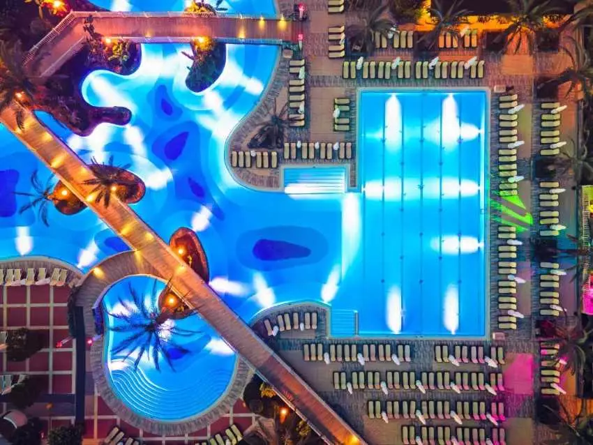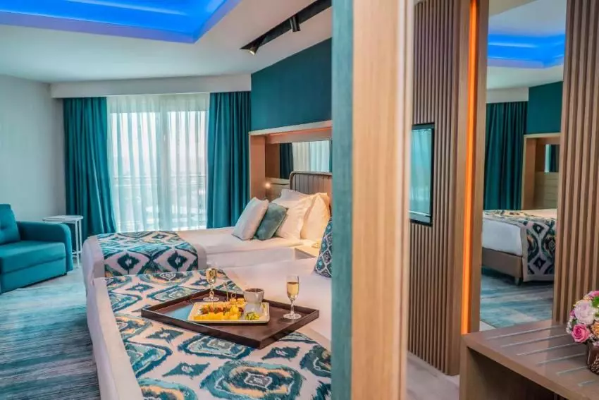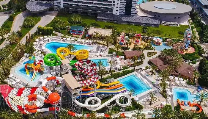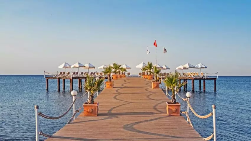 هتل رویال وینگز، در آوریل 2005 با مساحت 72000 متر مربع، در فاصله 17 کیلومتری فرودگاه بین المللی آنتالیا و 15 کیلومتری مرکز شهر آنتالیا افتتاح شد. هتل رویال وینگز در فضایی آرام و نزدیک ساحل شنی طلایی دریای مدیترانه، راحتی خانه را به همه مهمانان ارائه می دهد. این باغ با مساحت 4672 متر مربع شامل استخرهایی برای کودکان است و با درختان خرما، مسیری را مستقیماً به ساحل ایجاد می کند. استخر با طراحی هوشمندانه در اطراف باغ جریان می یابد و فضایی خصوصی و آرام با منظره ای از ساختمان رویال وینگز دارد.