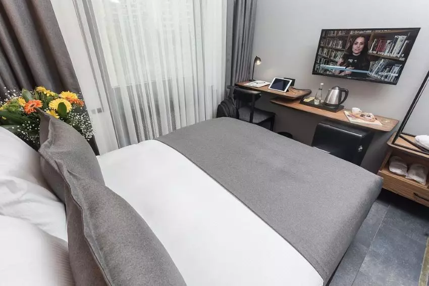 هتل چهار طبقه و ۷۷ اتاق دارد؛ در این اتاقها امکاناتی نظیر تلویزیون با کانالهای ماهوارهای، میز کار، مینیبار، کتری برقی، جالباسی و صندوق امانات در اختیار مهمانان قرار میگیرند. تمام واحدها شامل حمام اختصاصی بههمراه کابین دوش، سرویس بهداشتی فرنگی، لوازم بهداشتی رایگان و سشوار میشوند. از دیگر امکانات اتاقها میتوان به اینترنت رایگان و تهویه مطبوع اشاره کرد. سیگار کشیدن در این واحدها ممنوع است.